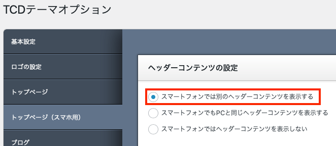 私の場合は、どちらもスライダーですが、文字配置をスマホ表示のとき限定で少し調整したいがために、PCとスマホで別々の設定をしています。