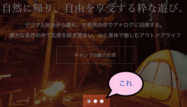 実は以前のバージョンでは、スライダーを1枚のみで設定しても、ページャーのようなマーク (下図参照) が付されていました。これについてはupdateで改善されており (明確に更新履歴に記載がある)、1枚のみで使う場合はこのマークが出てこないようになりました。